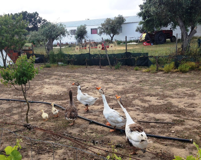 PELOS CAMINHOS DO RIBATEJO+++OS PATOS GANSOS+++NA SUA GUARDA E VIGIA ATENTA+++E NA SUA DEFESA FAMILIAR.